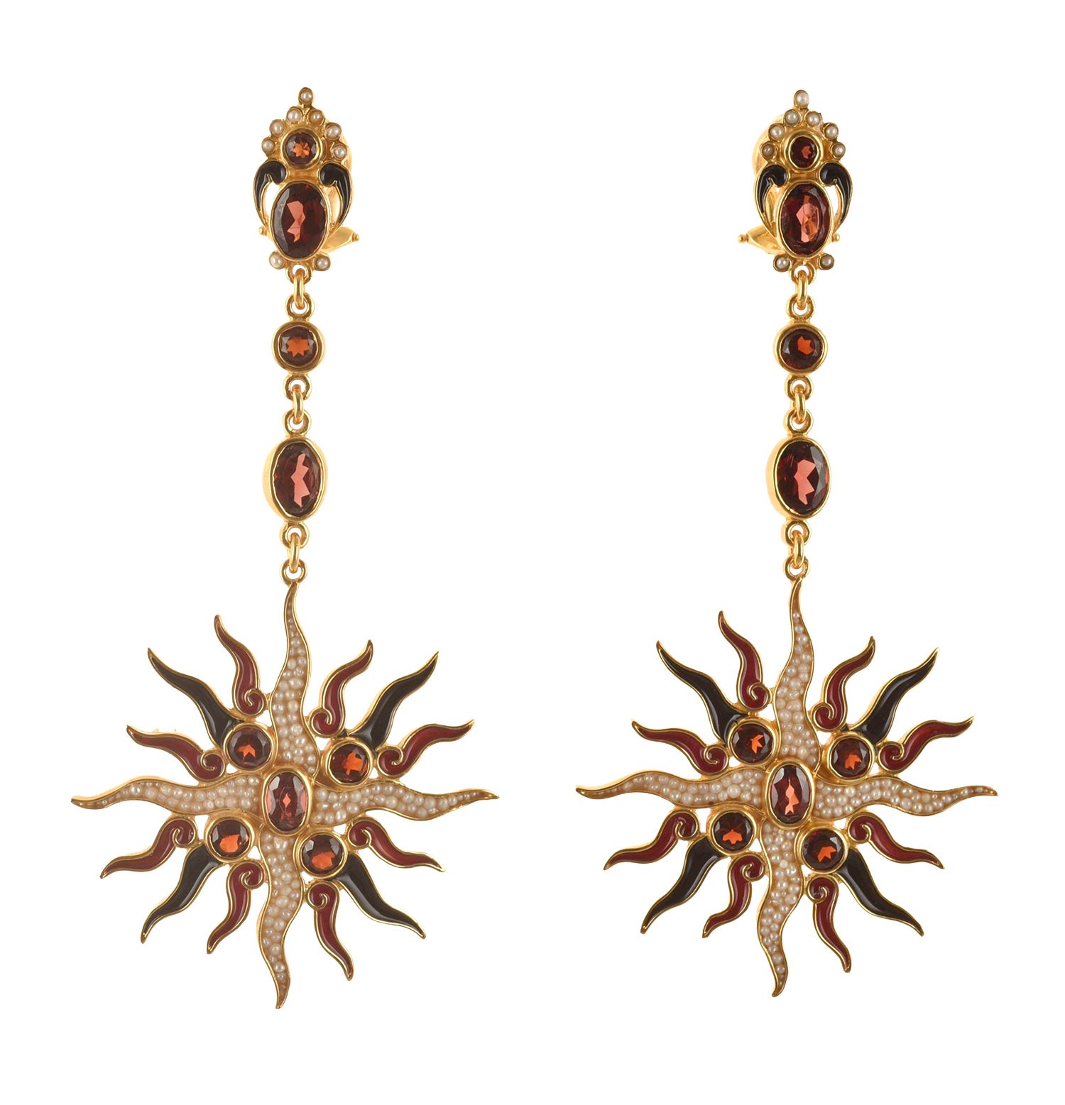 Realizzati con smalti in tecnica cloisonnè, con granati, microperle naturali.