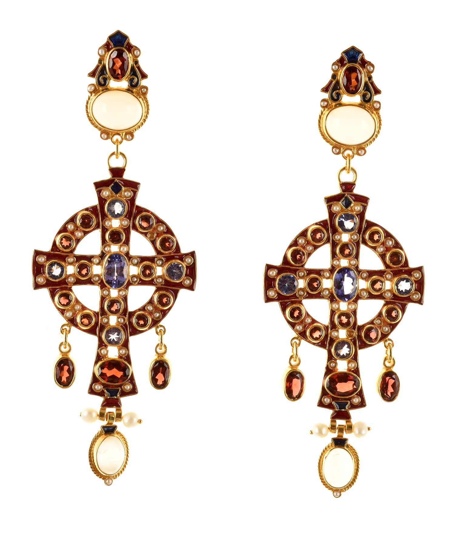 Realizzati con smalti in tecnica cloisonnè, con pietre di luna, granati, tanzaniti, perle, microperle naturali.