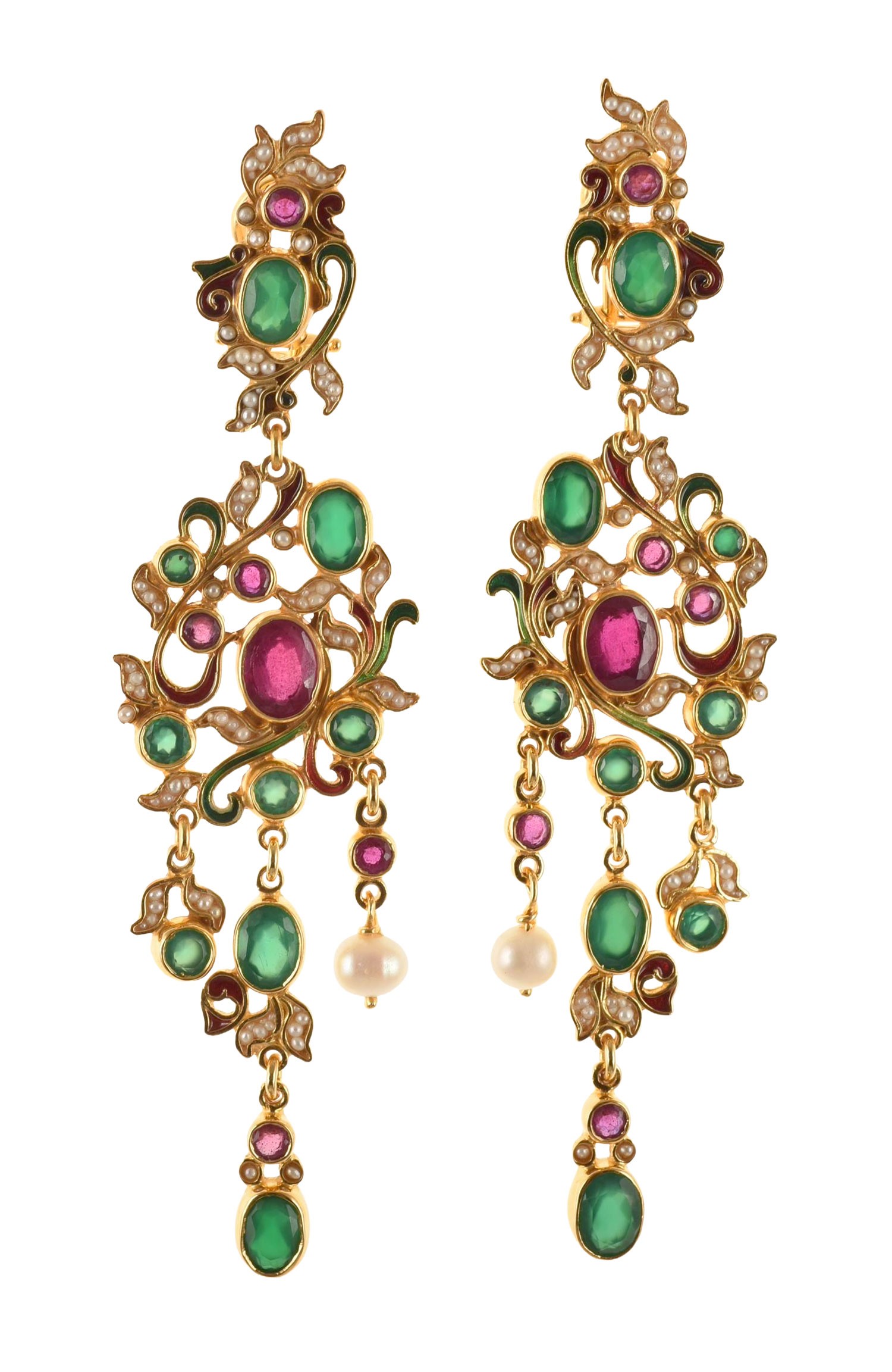 Realizzati con smalti in tecnica cloisonnè, con agate verdi, rubini, perle, microperle naturali.